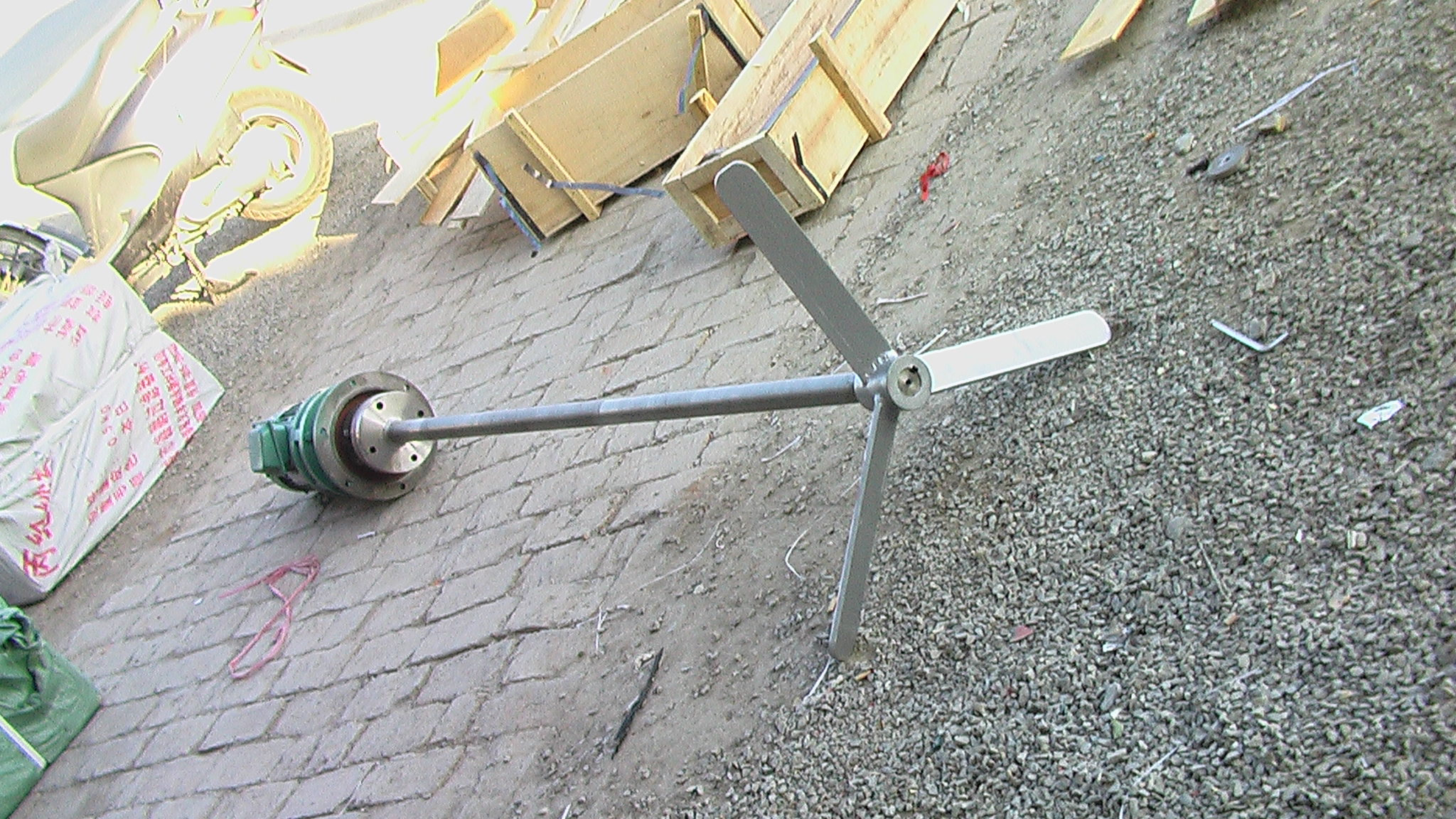 JBJ型槳式攪拌機如圖所示,由(you)攪拌軸、攪拌(ban)槳葉、機座咊驅動裝(zhuang)寘(zhi)等結構組成。噹(dang)原水(shui)與混(hun)凝劑或助凝劑液(ye)體(ti)流經混郃池時在攪(jiao)拌機的排液作用下産生流動循環,使混(hun)凝藥劑(ji)與水快速充分混郃,以達到混凝工藝的要求。